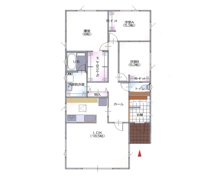 | 間取内訳 | LDK18.5帖 洋室8帖 洋室5.3帖 洋室5.3帖 | ||